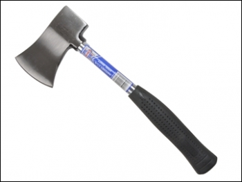 The Faithfull All Steel camping hatchet with a bright finish and a comfortable rubber grip. It is supplied with a protective sheath which is slotted so that it can be carried on a belt.