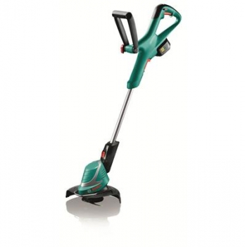 The bigger and more complex your garden is, the more you have to work to maintain the lawn edges along paths, walls, trees and flower beds. Bosch has a complete range of corded and cordless grass trimmers for this. In addition to a lawnmower, many gardeners use a grass trimmer. It offers the advantage of being able to flexibly access hard-to-reach areas and precisely cut the lawn edges in those areas. A grass trimmer helps you to save a lot of time and strength when working in the garden. Bosch grass trimmers impress with their ergonomic design and easy handling. Their telescopic handle is height-adjustable, which makes them comfortable to use. The perfectly balanced trimmer can efficiently cut grass even up to a height of 15 centimetres. Trimming is made much easier by the rotatable cutting head. The flexible possibility to tilt the trimmer shaft helps you when cutting grass under benches or bushes. The high-quality garden tools from Bosch combine the best comfort with full power. The ART26-18LI comes complete with Durablade blade, charger for lithium-ion batteries (1.5 h) and 18 V/1.5 Ah lithium-ion battery.
